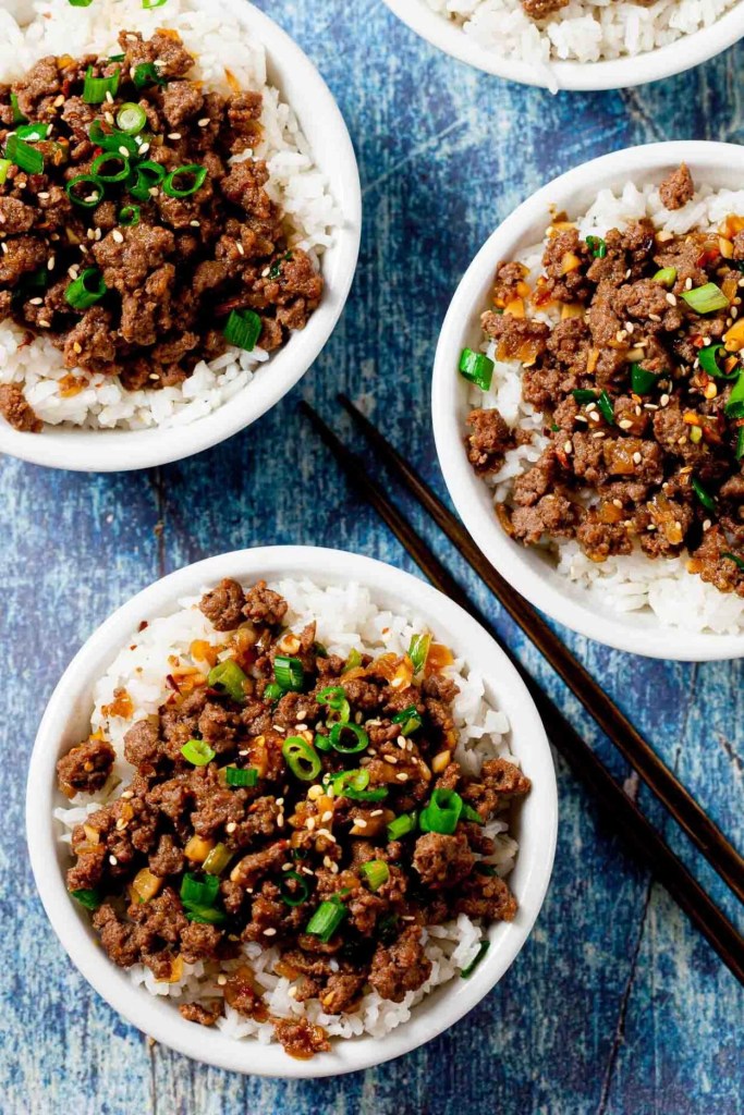 Korean Beef Bowls with sticky rice and broccoli from chewoutloud.com – I usually make these for a high-protein lunch, but they would also make a great dinner. You can take them for lunch all week, or freeze some for another time. I like to make sticky rice and steamed broccoli for mine.