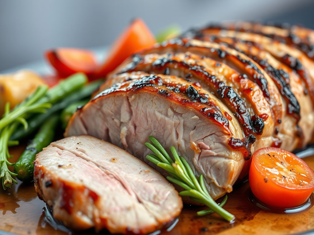 Smoked pork loin, Garlic Butter Noodles, zucchini and mushrooms