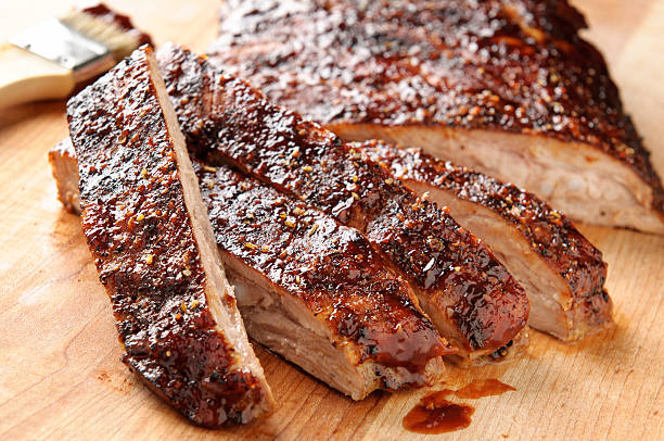 Ribs, potato salad, ranch beans