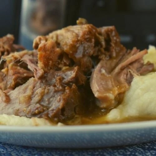 This meal is for my family for Sunday lunch – and for leftover sandwiches later in the week. The roast actually cooks overnight – if you are serving it for lunch – as you cook it 8 to 10 hours in a slow cooker and then let it sit on warm for another four. Very few ingredients are needed, and it comes out very flavorful. It is from addapinch.com. Serve it over mashed potatoes and have green beans as a side. I also am going to serve Strawberry Earthquake Cake from recipstep.com. It is like an ooey gooey butter cake but with strawberries in it and some coconut and white chocolate chips. Some whipped cream on top finishes it off.
