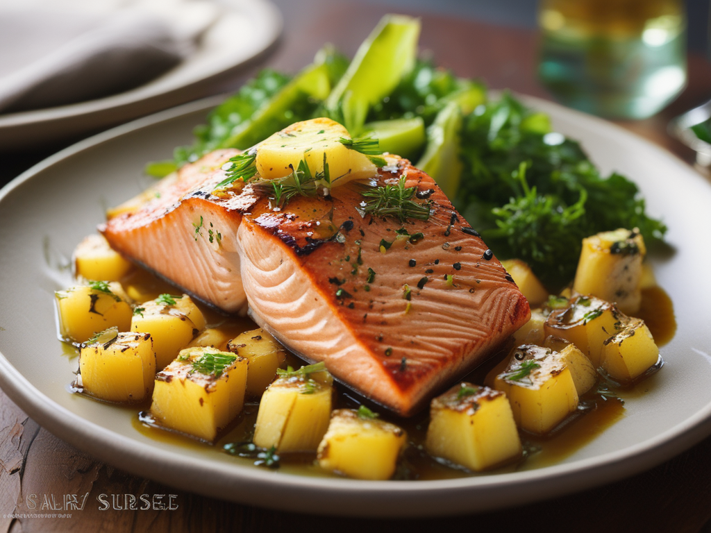 Baked Pineapple Salmon, rice side dish, broccoli
