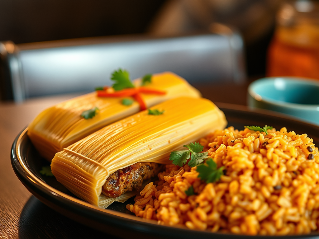 Tamales, Mexican Rice, Salad